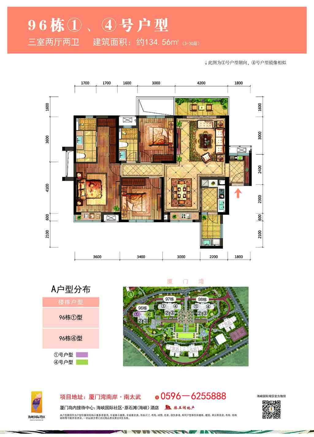 建筑面積:約134.56m(3-30層)